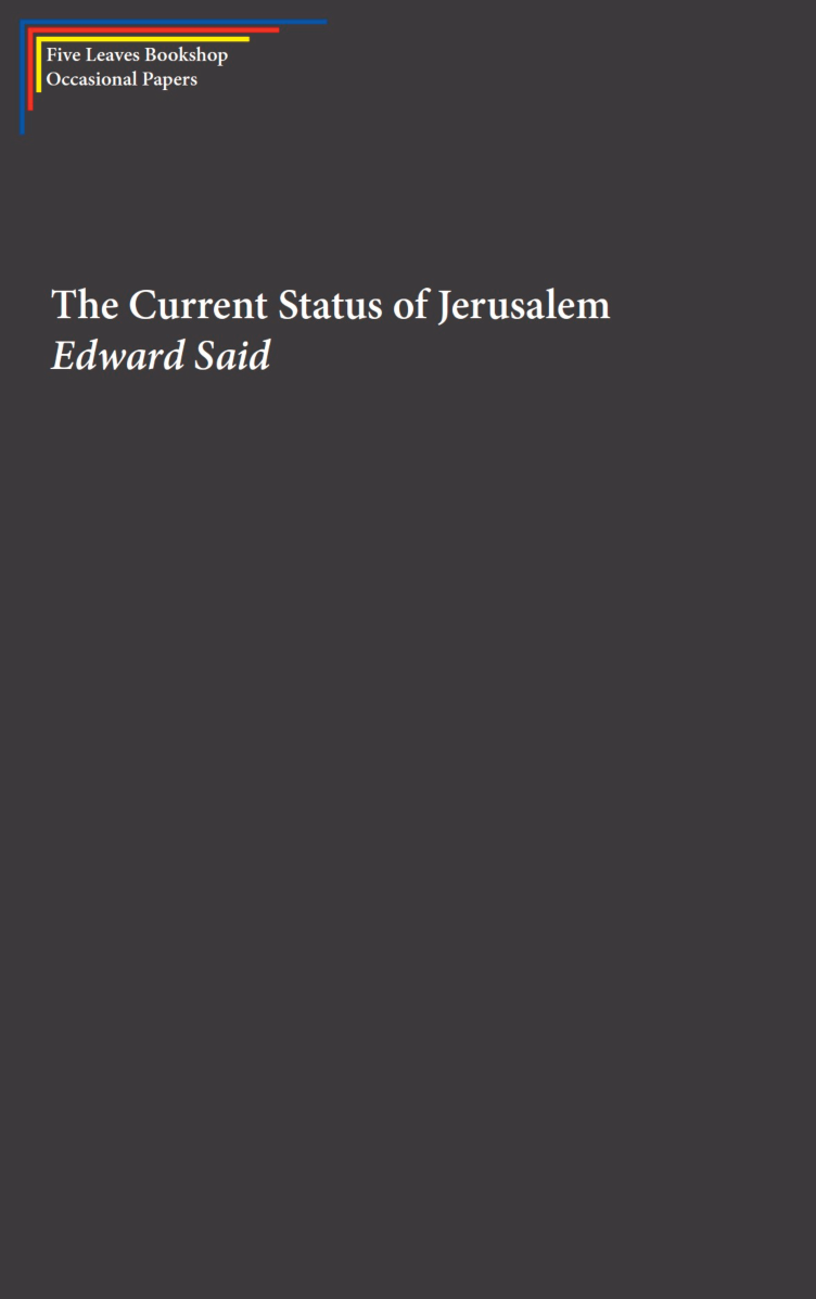 The Current Status of Jerusalem by Edward Said was first given as a paper in 1995 and later published in Jerusalem Quarterly together with an introduction by Rashid Khalidi. The essay and introduction are republished by Five Leaves Bookshop as a contribution to the current debate over the future of Israel and Palestine. Edward Said’s essay is as relevant now as when it was first written.